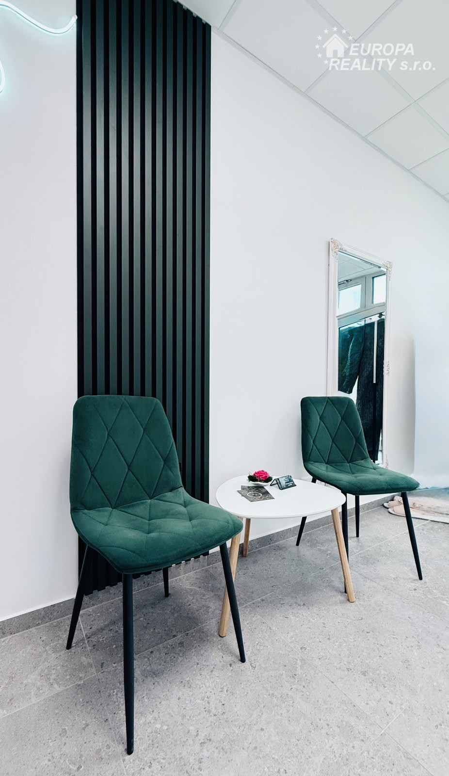 Dispozícia: recepcia a čakáreň, dve miestnosti vybavené umývadlami, masážnymi stolmi a špeciálnym masážnym vybavením (endosféra, presoterapia), kuchynka s chladničkou (alebo iná miestnosť), kútik pre kadernícke/make up služby s umývadlom a WC.